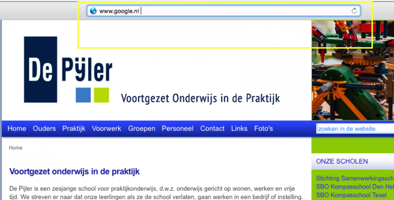 Als eerst open je het internet. Dan typ je in de adresbalk: www.google.nl en druk je op enter.
